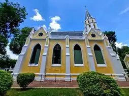 Come visit near Bangkok and visit Wat Niwet Thammaprawat, which at first glance looks like a Western church.