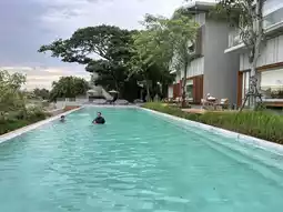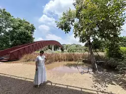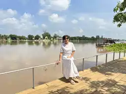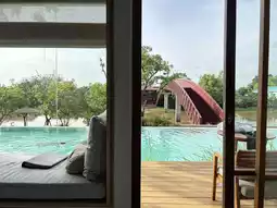 Sala Bang Pa-In is a 5-star hotel with a stunning style and a story. It's conveniently located near Bangkok. Upon arrival, the lobby is a red-brick pavilion. We checked in and were provided with complimentary water. Then, we walked across a red bridge to the accommodation. The accommodation is located in several zones, all within walking distance. The rooms are air-conditioned and the beds are comfortable and smell wonderful. Sala Bang Pa-In is an island in the middle of the water, so the hotel is surrounded by water. Every part of the hotel is right on the river, from the restaurant to the accommodation. You can walk around the hotel. The large swimming pool is a favorite among the kids.
