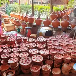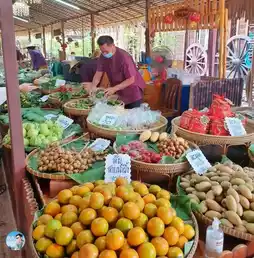 This market is a Thai-style market in a vintage style. The atmosphere inside the market still preserves the original Ayutthaya in the past. It is a large group of Thai houses, beautiful ancient Thai architecture. Vendors wear retro clothes to welcome customers with sweet smiles. There are many things for us to choose from, both savory food, sweet food, ancient Thai desserts, drinks, various fruits, agricultural products, and woodwork, tools, household appliances, and various home decorations. It can be said that everything is complete in one place. Plus it's very economical 🥰