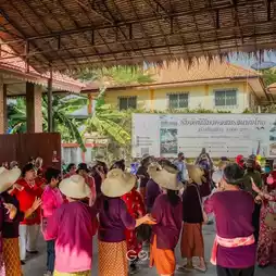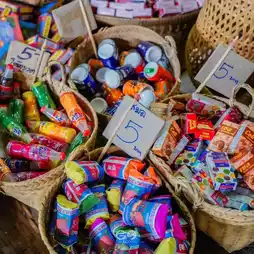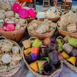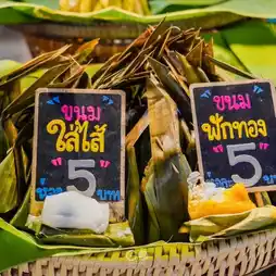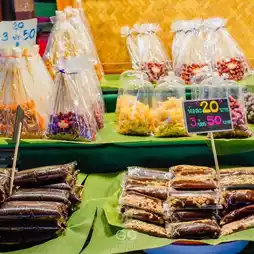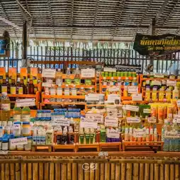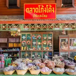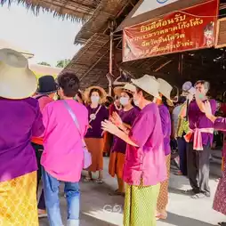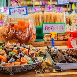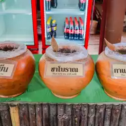 After praying, don't forget to stop by the retro-style Kongkong Market. For those who love walking around the market, I recommend it. You'll definitely love it. Food such as Thai desserts, delicious Khanom Kong, and also ancient items such as Thai herbs, pottery, and woven machinery. Whether you buy them for yourself or as gifts, I can tell you that you can finish everything here in one place. You don't have to go anywhere else. 🤣