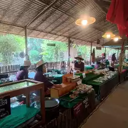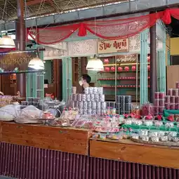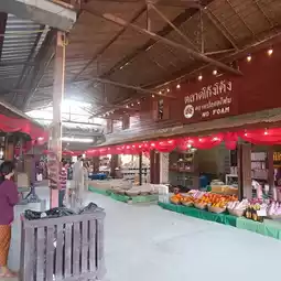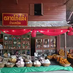 Kong Kong Market (Baan Saeng Som) is located at Ban Saeng Som, Village No. 5, Bang Pa-in - Wat Phanan Choeng Road (next to Wat Ban Len). It is an interesting old-fashioned market with an old-fashioned atmosphere like the Ayutthaya period. In the past, Ban Saeng Som was a checkpoint (a former tax collection checkpoint) and a place where various products were traded and exchanged. The name Kong Kong Market comes from the fact that sellers would sit on the ground to sell their products. Therefore, people who came to buy products had to go up to the ground to select the products they were interested in. In the past, this was considered a polite and gentle gesture.