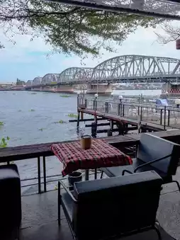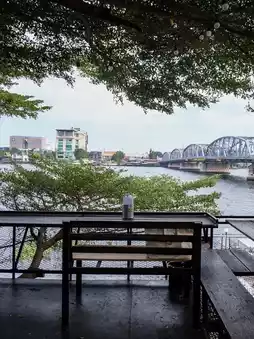 🌳The atmosphere inside the shop is shady with trees, just like the shop's name. Walk up the stairs to the 2nd floor. There is a big tree in the middle of the shop. The wind is cool and comfortable. You can see the beautiful panoramic view of Sanghi Bridge. I came on a weekday, so there were not many people. I got to sit at the edge of the table. If it is Saturday-Sunday, there will definitely be a long queue at this corner.