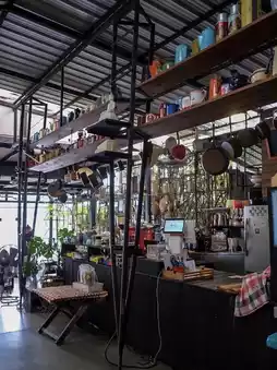 🔶Coffee On Tree The shop is located near Sanghi Bridge. Enter via the same route as River Bar. After parking, if you are looking for the entrance, look for the green tree arch on the right. Walk into the space by the tree arch and you will find the shop.