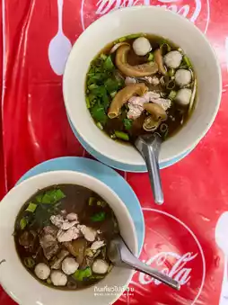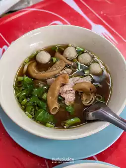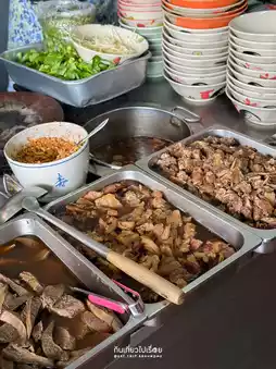 The menu here focuses on beef noodles, with many types to choose from, such as stewed beef or fresh beef. The soup is aromatic and well-rounded. There are both thick soups to choose from, which are not too thick, and boat noodle soups, which have a slightly stronger flavor, but they are not as thick as boat noodles. They are quite well-rounded. Another thing is that the price is not expensive, starting at 60 baht, suitable for everyday budget-minded eating. You can eat your fill without breaking the bank. 😄