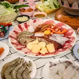 A famous BBQ restaurant in Charan area, catering to foodies! 🥓 There are 3 great value BBQ sets to choose from: Small set 300, Medium set 400, and Large set 500 baht. Delicious and complete with soft marinated pork, fresh seafood, and a special dipping sauce that you must try.