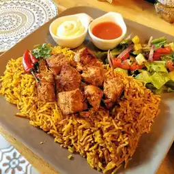 Cube Chicken Biryani, Kebab Beef Biryani, Kebab, Saurama, Pitta Pocket