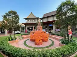 This is an outlet near Suvarnabhumi Airport. It is located in Bang Phli District, Samut Prakan Province. It is a prominent project that attracts tourists. The building is made of a Thai-modern gable roof. It has a spacious area, lots of parking, and many famous brand shops in the project. There are products such as clothes, bags, shoes, and sports equipment that are discounted during promotions. There is also a large food court, a playground, an activity area, and many photo spots. From this point, you can clearly see the planes from Suvarnabhumi Airport.