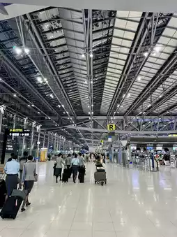 #GetDiscountsWithoutLuck Suvarnabhumi Airport is the main airport in Bangkok. It stands out with its large passenger terminal designed to be airy with a curved roof and clear glass. It is modern and can accommodate a large number of passengers.