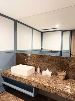 There's fast Wi-Fi and charging plugs at every table. The bathroom is very clean and there's also a shower room. If you have a connecting flight or arrive very early in the morning and want to feel refreshed before continuing, this is perfect! (Also, you can book a free massage service!!)