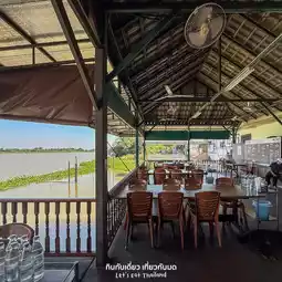 A large restaurant on the banks of the Chao Phraya River. Each person orders less than a thousand baht per table.