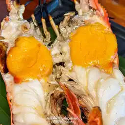 #GrilledShrimp There are many sizes, but I ordered the 1,700 baht per kilogram. I ordered 5 shrimp for a total weight of 1.42 kilograms (2,424 baht). The claws were stir-fried with lotus stems. The cooking fee was 80 baht. The grilled shrimp were juicy and grilled just right. The meat was cooked, not tough or raw. It was just right. The meat was fresh and bouncy. I guarantee that every shrimp is like this. The shrimp's roe is full in your mouth. The seafood sauce is really delicious. They didn't hold back and gave it to everyone.