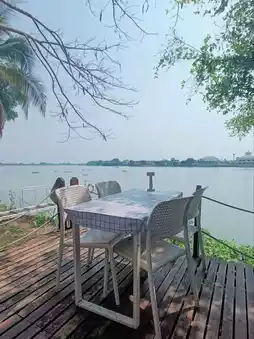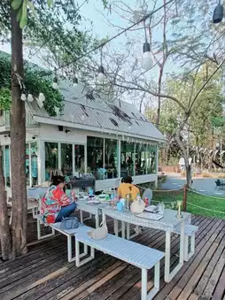 👉 A restaurant and cafe by the Chao Phraya River. The spacious area is divided into a seating area of the restaurant and a very large playground area. Suitable for families with children. There are also art activities for children to do. The shop offers food and drinks. There are both indoor and outdoor seats with a view of the Chao Phraya River.