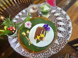 ☕️ Freshly brewed coffee served with a selection of cakes, Thai desserts, and mango sticky rice.