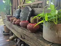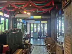 ✨️ A charming riverside cafe along the Chao Phraya River, featuring an old-style wooden house design with beautiful decorations. The lush surroundings make every corner perfect for photos.
