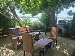 🏖️ Located by the river but surprisingly cool, you can choose to sit indoors or outdoors. Ideal for family visits or for those seeking the serene vibe of a riverside home outside the city, yet not far from Bangkok.
