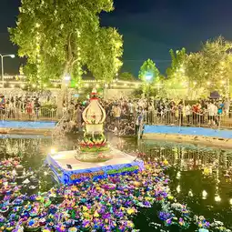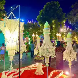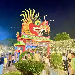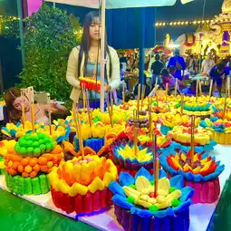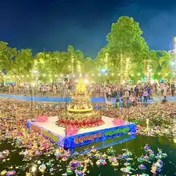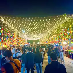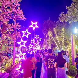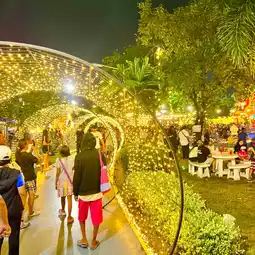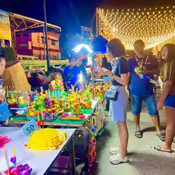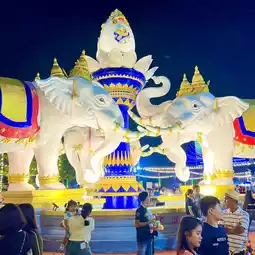 Bang Sai Public Park holds a grand Loi Krathong event. The park is decorated with twinkling lights. There are many shops selling Krathongs and food. Enjoy taking pictures in the park, which is beautiful from every angle. It is a public park by the sea. The air is fresh and the atmosphere for Loi Krathong is excellent. Bang Sai Public Park is located in Bang Sai Subdistrict, Mueang Chonburi District, Chonburi Province. #tripแจกโรงแรมฟรี