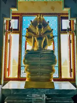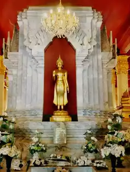 This chedi boasts stunning architecture, comprising five spires, with the principal spire housing the Buddha's relics.