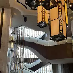 The chedi has five levels, each featuring unique artwork and exhibits depicting Buddhist stories.