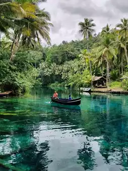 Clear water, blue color and full of green palm trees that are the perfect spot for a relaxing time.