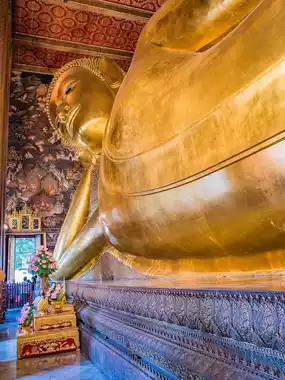 Wat Pho (Temple of the Reclining Buddha), also known as Wat Phra Chetuphon, is located just behind the Temple of the Emerald Buddha and is a must-see for everyone visiting Bangkok for the first time. It's one of the city's greatest temple complexes, and it's known for its 46-meter-long gold-leaf-covered reclining Buddha.