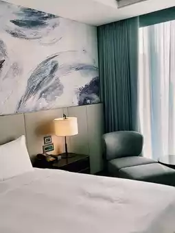 The Carlton Hotel Bangkok Sukhumvit certainly puts on a show in terms of architecture. Its undulating copper-finned façade and cascading curves are impossible to ignore. The handblown glass ornaments that spiral across eight levels will capture your attention inside the wide and beautiful foyer. It's meant to resemble a dragon, but a rather abstract one. There are many more magnificent works of art to be found.