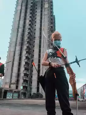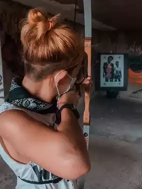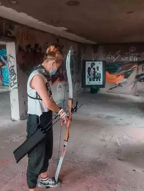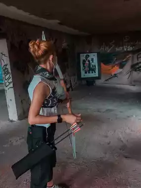 Once you've practiced archery, we'll go up and hunt zombies in an abandoned building and collect points. I guarantee that this activity is fun and exciting.