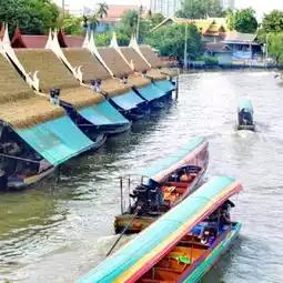 #Taling Chan Floating Market is very lively during the weekend. Not only is it not far away and easy to travel to, but buses and songthaews also pass through here. It is also full of many kinds of food, including grilled fish, local Thai desserts, and various local products. The interesting thing about this floating market is the photo corner, so everyone can take home a happy memory. #Floating Market #Real Life #Khling Chan District #Bangkok