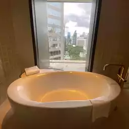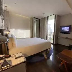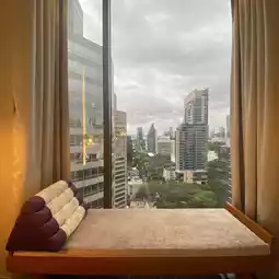 The best value for money with Hotel Indigo Bangkok, Witthayu Road. We will tell you that when we booked at a price of 2,000 baht, but when we arrived at the hotel, we got 1,000 baht back to use for food in the hotel. It's like we booked a hotel for only 1,000 baht, everyone. It's very worthwhile. And we also got a room upgrade. Don't even mention the view. Pay only a few thousand but the view is worth millions. And the service of the staff here is very good. We like that this hotel has a balcony to go outside. You can come out to breathe fresh air and enjoy the view of the park to the fullest.