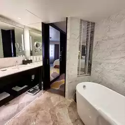 🚪I had the opportunity to stay in a 53 sq.m. Junior Suite. The area is spacious, clean, the room is decorated simply but beautifully, comfortable to the eyes, and the living room and bedroom are well-proportioned. There is also another bathroom in the living room, which provides good privacy. There is a large TV, a comfortable work desk, and a view of Lumpini Park and Chulalongkorn Hospital.
