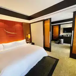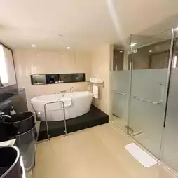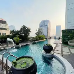 A luxurious hotel in the heart of the city. In addition to its luxury, the rooftop is very romantic. Sit and eat while enjoying the view of Bangkok from a high angle. This time we stayed in a one-bedroom suite. There is a living room, a work room, a bedroom, and a very large bathroom. In the morning, we woke up and went swimming. It was very chill. If you are bored, you can come and lie down and relax.