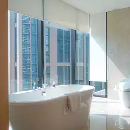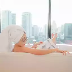 Working hard, come to change the atmosphere at home, bored, not bored anymore. And of course, during this situation, we still have pictures to upload to social media. Let's take you to see the fun atmosphere. And of course, anyone who comes to Skyview Hotel must want to take pictures with the swimming pool. But at this time, they are temporarily closed. Due to the COVID situation Even though you can't take pictures at the swimming pool, we can change to take pictures with the bathtub instead. It's much more fun. You get a cool angle that is no less than the swimming pool. Along with a beautiful city view And most importantly, you will definitely get many more beautiful pictures. And whether it's having dinner in a spacious bedroom Or taking pictures with breakfast in the morning, come create a relaxing atmosphere at Skyview Hotel.