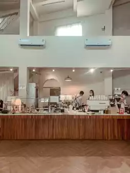 The other day we secretly visited a very popular cafe at the moment. This shop is located on the main road, decorated in a minimalist style, with a controlled tone. The highlight is the photo corner on the rooftop. It takes very beautiful photos. If you encounter a blazing sun, don't be discouraged because the photos will be good and the sky will be beautiful. 😂💙