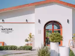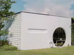 A white minimalist cafe with a very Japanese feel.