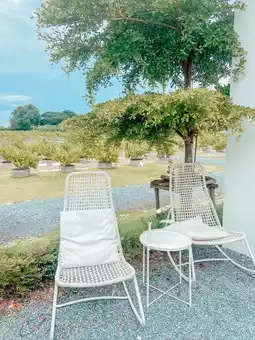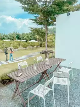 A very minimalist cafe near Bangkok. There is a melon garden to walk around and a cute photo corner with a Japanese feel.