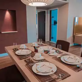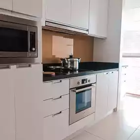 Today, I stayed in a 2 Bedroom Premier room that can accommodate a family. The room has complete facilities: 2 large bedrooms, a living room, a dining table, a kitchen, a washing machine, an oven, and a microwave. It's so good. ☺️☺️