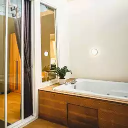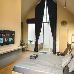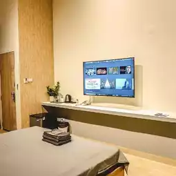 Resort in the city but with a Nordic feel. Anyone looking for a place to relax but don't want to travel far, this is the answer!!! Just drive to Don Mueang Airport, it's not far. The rooms are beautiful and clean in Nordic style, high ceilings, contrasting with the wood color tones, it goes together perfectly. If you come here, don't miss taking pictures. No matter which angle you take, it's beautiful. The rooms have complete amenities. The TV is very big. You can watch series all day long. And the highlight that you can't miss is to soak in the outdoor Jacuzzi. Relax and feel comfortable. It's so awesome.