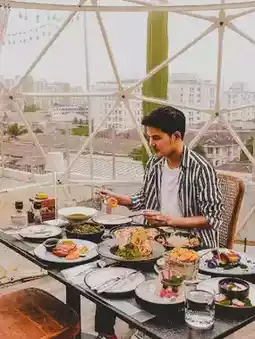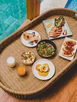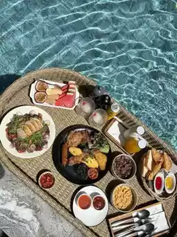 🏜 Wake up in the morning and they serve you a breakfast set in your bedroom. That's not all. Then they serve you a set of food on a floating tray. When you see it, why wait? Hurry up and change your clothes and go soak in the tub. Then take some fun photos