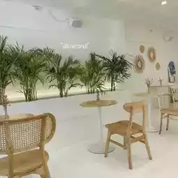 ðĨĪEveryday mookrata & cafÃĐ, this shop is located in Silom area, next to Narathiwat Soi 2, in the heart of Bangkok, so it's easy to travel. It's convenient to come by both private car and BTS, get off at Chong Nonsi station (take a motorcycle taxi or taxi, it's only a short distance). The shop is decorated in white tones. This corner of the shop is very beautiful. It feels like going to the beach (haha, I just think so). Let's continue on the 1st floor, which is a cafe. There are many sitting areas and places to take pictures. The lights in the shop are also very beautiful. Every picture taken here comes out beautiful. The shop's menu has both desserts and drinks at affordable prices.