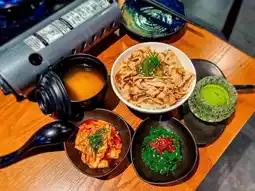 🍲 Charcoal grilled pork rice set, price 215++ baht