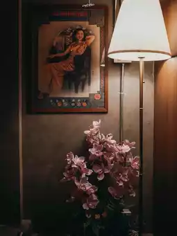 The highlight is the painting of a woman in a cheongsam holding an umbrella on