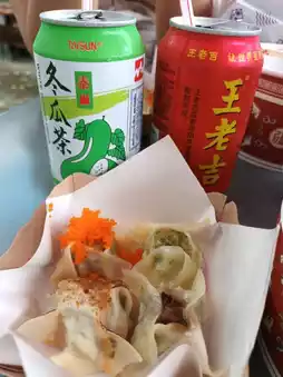 Another unique thing is the drink. We ordered the 'Wang Lao Ji' drink, which is similar to Luo Han Guo. It depends on your preference. Personally, for someone like us who loves dumplings, I think this shop is okay. But at Si Phraya, the shop is very small. The highlight is the front of the shop. If you don't take a picture, it's like you didn't come. 55555