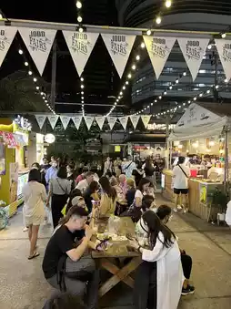 There are many delicious restaurants, such as Leng Zaab and Kung Tang, popular menus on various social media. They have arranged a seating area for food. There is live music every night.
