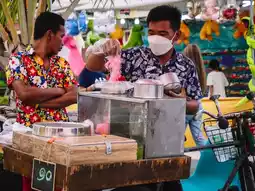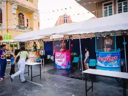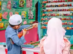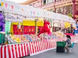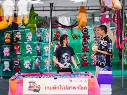 There are food, drinks, OTOP products, and activities such as balloon throwing, shooting, star picking, girls falling into the water, etc.