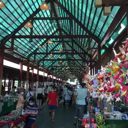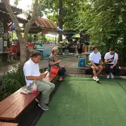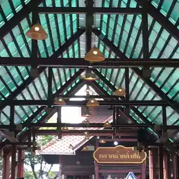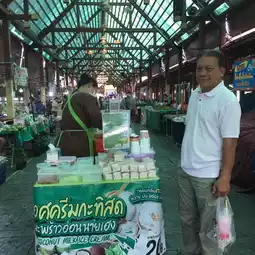 On the morning when you want to walk around and enjoy a lot of food, you will see both Thais and foreigners. A community market in the suburbs of Bangkok, with a skytrain service to your destination. There is a wide variety of food, a good atmosphere, clean, fresh food ready to eat by the water. There is a train running through to make it look different. There is a free haircut service for both men and women. The vendors and people are all lovely. Go to the market to visit, stop by, shop, and eat. Open on Saturdays, Sundays, and public holidays. #Taling Chan #Taling Chan Floating Market #Taling Chan Restaurants
