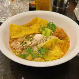 The soup of tom yum is super rich, not too spicy and with a little sourness. Drinking the hot soup is already great. It is also delicious to eat with noodles🤤 The ingredients of soup noodles include pork balls, fishballs, fried wonton skin, etc. They are very rich😉