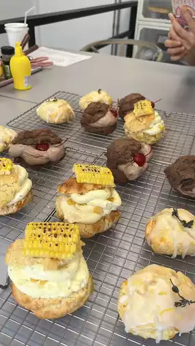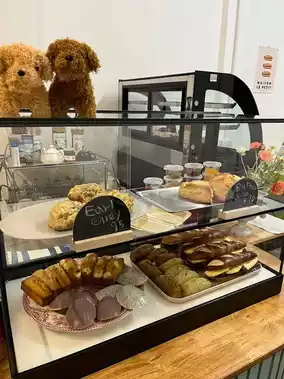 The shop has 2 floors, where you can order and eat pastries on the 1st floor, while the 2nd floor is where the chef's pastries are baked. When the chef is baking fresh pastries, the aroma will spread throughout the shop, making you hungry.