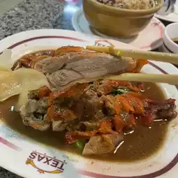 - Duck, the meat is not very tender. It comes with peanuts. It's strange, but I personally think the taste is just so-so. Not good or bad.