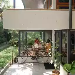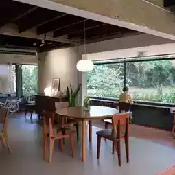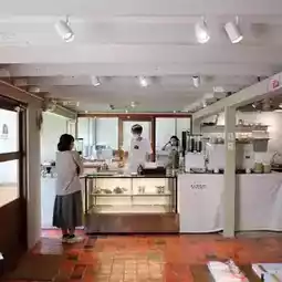 The atmosphere outside is very shady with lots of trees. Even though there are many tables inside, it is arranged perfectly and does not feel cramped. I personally like to sit in front of the glass in the back garden. I can sit and work comfortably.