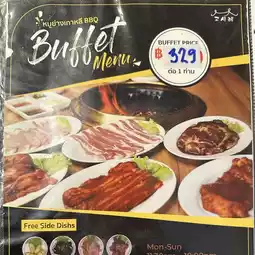 Kosirae, a Korean BBQ restaurant, had the opportunity to eat a Korean BBQ buffet, priced at 329 baht per person, but if you want seafood, it's 450 baht.