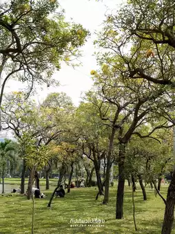#Where to go this summer? I haven't been to Chatuchak Park for a long time. This time I tried walking in and found that it's a great place to walk around. Even though the weather is hot, under the shade of the big trees, there's a good breeze and the weather is quite cool. You can come and lay down a mat for a picnic. There are many zones in there, both on the grass and by the pond. In the morning, there are people who come to exercise. It's a park in the middle of the city that Bangkokians like us must come to. It's also next to the BTS Mo Chit, making it convenient to travel.